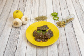 porcja wieprzowiny w sosie z szczypiorkiem na wierzchu w opakowaniu dostawy do domu