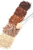 pokruszony cień do powiek i Pędzel profesjonalny makijaż na białym tle