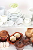 różne naczynia na półce, z bliska