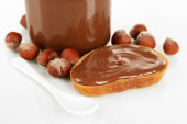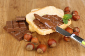 Chleb z orzechami laskowymi słodkiej czekolady rozłożone na stole