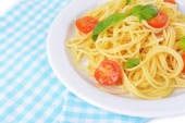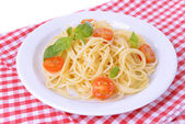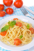 pyszne spaghetti z pomidorami na tabliczce na stół szczegół