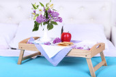 Zdjęcie "Drewniana taca z lekkim śniadaniem na łóżku" może być wykorzystywane do celów osobistych i komercyjnych zgodnie z warunkami zakupionej licencji Royalty-free. Obraz jest dostępny do pobrania w jakości wysokiej rozdzielczości do 5760x3840.
