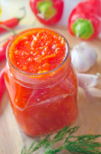 Gorąca galaretka pieprzowa. Słodka papryka i sos chili, konfitura, dżem w szklanym słoiku.
