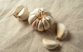 Zamknij świeży czosnek na stole