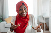 Zdjęcie "Zdalna kariera. Czarna kobieta w hidżabie siedzi przy biurku z tabletem cyfrowym" może być wykorzystywane do celów osobistych i komercyjnych zgodnie z warunkami zakupionej licencji Royalty-free. Obraz jest dostępny do pobrania w jakości wysokiej rozdzielczości do 5760x3840.