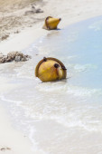 dwa kokosy na falach oceanu. Republika Samana.Dominican.