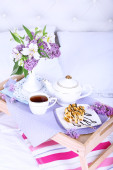 Zdjęcie "Drewniana taca z lekkim śniadaniem na łóżku" może być wykorzystywane do celów osobistych i komercyjnych zgodnie z warunkami zakupionej licencji Royalty-free. Obraz jest dostępny do pobrania w jakości wysokiej rozdzielczości do 5760x3840.