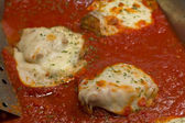 Włoski amerykański pieczony makaron danie wypchane manicotti na drewnianym stole kuchennym