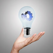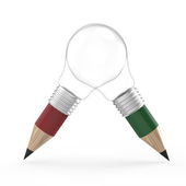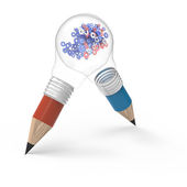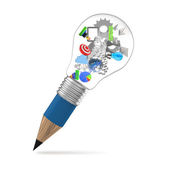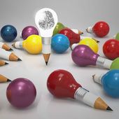 3D metal ludzkiego mózgu wewnątrz ołówek żarówki jako koncepcja