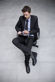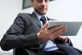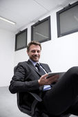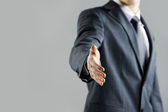 pewnie uśmiechający się biznesmen dając uścisk dłoni