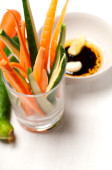 Puchar świeżych warzyw z przyprawami i zaprawy obok, podstawowe składniki Przepis zupa