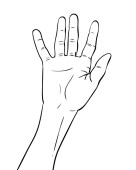 czarny kontur dłoni przeniósł się palcami od siebie