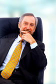 starszy człowiek uśmiechający się na białym tle portret zbliżenie