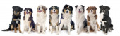 Art collage z zabawnych psów różnych ras stwarzających izolowane na białym tle studio.