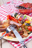 wspólne wieprzowina z pieczonymi ziemniakami i świeże warzywa