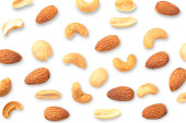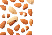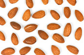 Zdjęcie "Obierane pestki moreli izolowane na białym tle. Fotograficzny kolaż. Płynny wzór. Tekstura żywności. " może być wykorzystywane do celów osobistych i komercyjnych zgodnie z warunkami zakupionej licencji Royalty-free. Obraz jest dostępny do pobrania w jakości wysokiej rozdzielczości do 5760x3840.