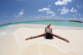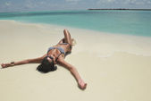 Kobieta, leżąc na plaży