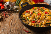 Zdjęcie "Gryka z kurczaka i warzyw. Widok z przodu." może być wykorzystywane do celów osobistych i komercyjnych zgodnie z warunkami zakupionej licencji Royalty-free. Obraz jest dostępny do pobrania w jakości wysokiej rozdzielczości do 5760x3840.