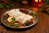 Zdjęcie "Tradycyjne pierogi z kapustą i grzybami. Świąteczne dekoracje. Widok z góry." może być wykorzystywane do celów osobistych i komercyjnych zgodnie z warunkami zakupionej licencji Royalty-free. Obraz jest dostępny do pobrania w jakości wysokiej rozdzielczości do 5760x3840.