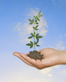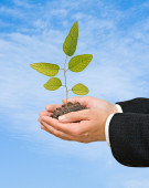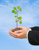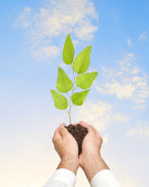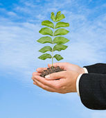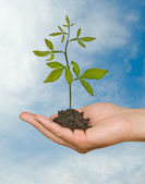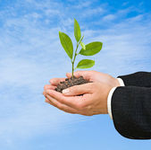dłonie z growng drzewo ze stosu monet