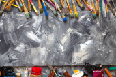 Zdjęcie "Artysta pracujący nad malarstwem. Człowiek artysta malarz w kreatywnym studio jako koncepcja sztuki" może być wykorzystywane do celów osobistych i komercyjnych zgodnie z warunkami zakupionej licencji Royalty-free. Obraz jest dostępny do pobrania w jakości wysokiej rozdzielczości do 5760x3840.
