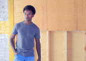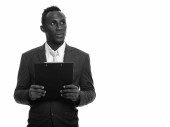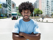 Portret przystojnego czarnego Afrykanina w żółtej koszulce na świeżym powietrzu w Bangkoku, Tajlandia