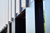 Zdjęcie "Nowoczesna architektura z promieniowaniem słonecznym. Fasada szklana i stalowa w jasny słoneczny dzień z promieniami słońca na błękitnym niebie. Gospodarka, finanse, koncepcja działalności gospodarczej." może być wykorzystywane do celów osobistych i komercyjnych zgodnie z warunkami zakupionej licencji Royalty-free. Obraz jest dostępny do pobrania w jakości wysokiej rozdzielczości do 5760x3840.