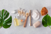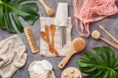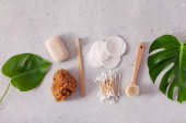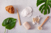 zero odpadów ekologiczna higiena łazienka koncepcja. drewniana szczoteczka do zębów podkładki wielokrotnego użytku pąki drewna szczotka