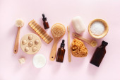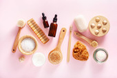 zero odpadów ekologiczna higiena łazienka koncepcja. drewniana szczoteczka do zębów podkładki wielokrotnego użytku pąki drewna szczotka