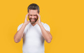 chory i zmęczony. zestresowany brodaty biznesmen w garniturze rozmawiać przez telefon.