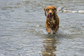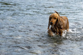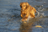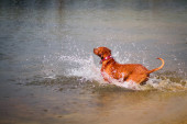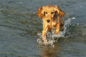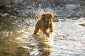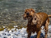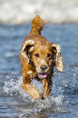 Happy angielski cocker spaniel podczas zabawy w rzece