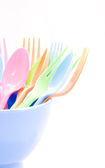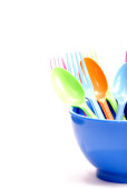 plastikowe naczynia składające się z łyżką, widelcem i miski