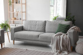 Zdjęcie "Stylowe wnętrze salonu z wygodną sofą" może być wykorzystywane do celów osobistych i komercyjnych zgodnie z warunkami zakupionej licencji Royalty-free. Obraz jest dostępny do pobrania w jakości wysokiej rozdzielczości do 5760x3840.