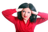 atrakcyjnych młodych kobiet w czarnej sukni. na białym tle.
