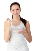 Zdjęcie "młoda kobieta dorywczo jedzenie jogurt." może być wykorzystywane do celów osobistych i komercyjnych zgodnie z warunkami zakupionej licencji Royalty-free. Obraz jest dostępny do pobrania w jakości wysokiej rozdzielczości do 5760x3840.