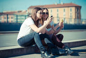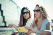 Zdjęcie "dwa piękne młode kobiety za pomocą smartfonu" może być wykorzystywane do celów osobistych i komercyjnych zgodnie z warunkami zakupionej licencji Royalty-free. Obraz jest dostępny do pobrania w jakości wysokiej rozdzielczości do 5760x3840.