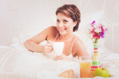 Zdjęcie "najpiękniejszą kobietą o śniadanie w łóżku biały" może być wykorzystywane do celów osobistych i komercyjnych zgodnie z warunkami zakupionej licencji Royalty-free. Obraz jest dostępny do pobrania w jakości wysokiej rozdzielczości do 5760x3840.