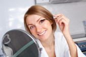 piękna młoda kobieta, dbanie o jej twarzy w domu