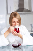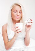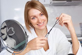 kobieta za pomocą kosmetyków