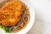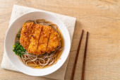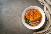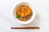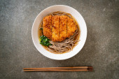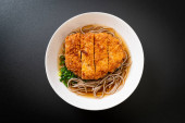 Soba ramen makaron z japońskim kotletem wieprzowym (tonkatsu) - azjatycki styl żywności