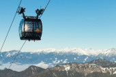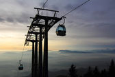 krzesełkowa z narciarzy nad niebieski niebo wieczorem