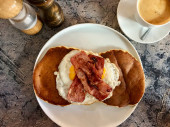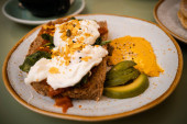 Zdjęcie "Kanapka z szynką i jajkiem na wierzchu." może być wykorzystywane do celów osobistych i komercyjnych zgodnie z warunkami zakupionej licencji Royalty-free. Obraz jest dostępny do pobrania w jakości wysokiej rozdzielczości do 5760x3840.