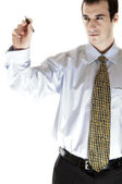 ekspresyjny biznesmen późno do pracy lub pracy w nadgodzinach, patrząc na cześć