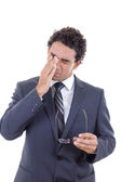sfrustrowany biznesmen o silne bóle głowy i migreny