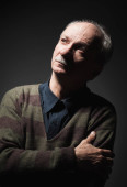 Zdjęcie "Portret przystojnego starszego mężczyzny rasy kaukaskiej w zegarku na rękę stojącego z laptopem na czarnej kamiennej ścianie" może być wykorzystywane do celów osobistych i komercyjnych zgodnie z warunkami zakupionej licencji Royalty-free. Obraz jest dostępny do pobrania w jakości wysokiej rozdzielczości do 5760x3840.