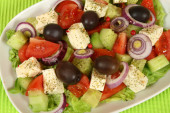 sałatka grecka z gigantyczne czarne oliwki, ser owce, chleb