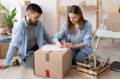 Szczęśliwa młoda para wyprowadza się ze starego domu