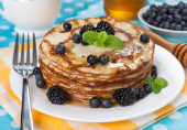 stos naleśniki z syropem i jagody