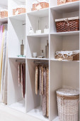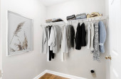 Zdjęcie "Wnętrze salonu wystawowego ze stylowymi ubraniami i akcesoriami.Kolekcja odzieży damskiej wiszącej na wieszaku w garderobie. wnętrze pokoju z półką na ubrania" może być wykorzystywane do celów osobistych i komercyjnych zgodnie z warunkami zakupionej licencji Royalty-free. Obraz jest dostępny do pobrania w jakości wysokiej rozdzielczości do 5760x3840.