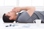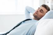 mężczyzna leżał na kanapie